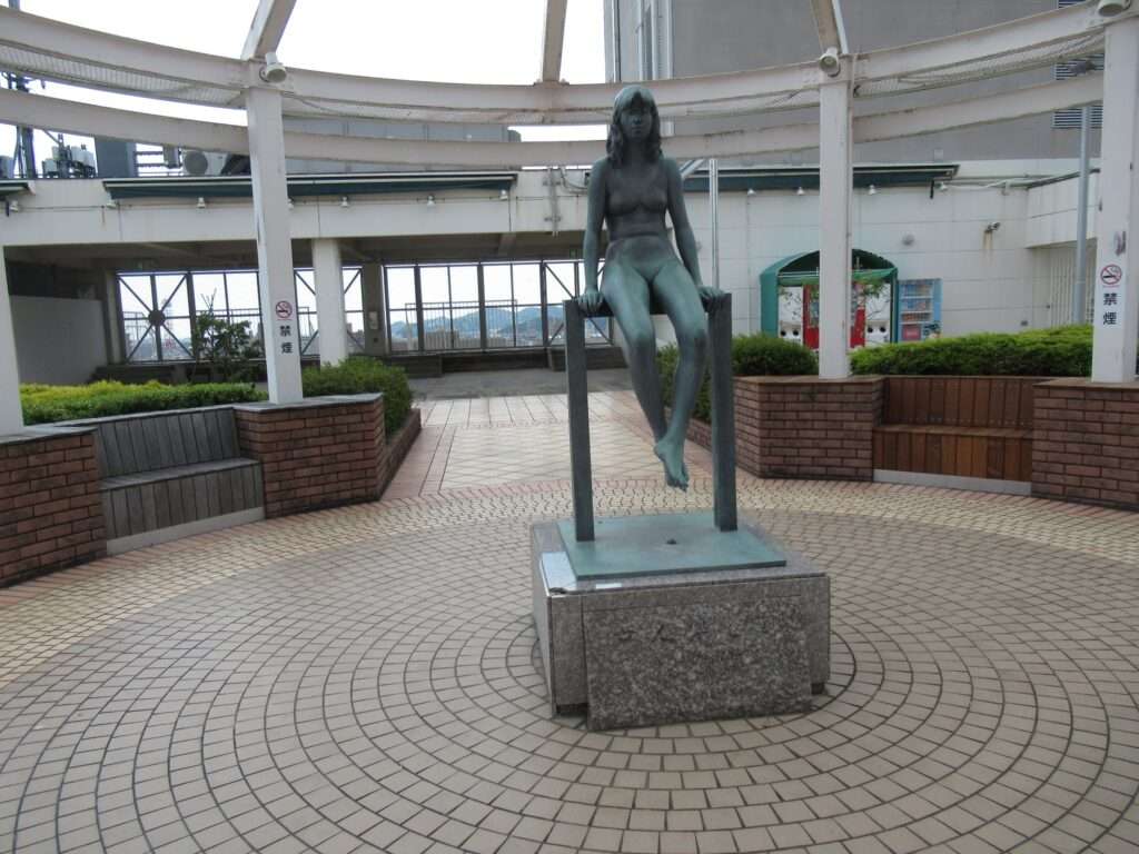 伊予鉄道松山市駅に直結しているデパート、いよてつ高島屋の屋上でございます。可愛らしい少女裸像がございました。タイトルと作者名が書かれていたんですが、読めなかったんですよ、はい。