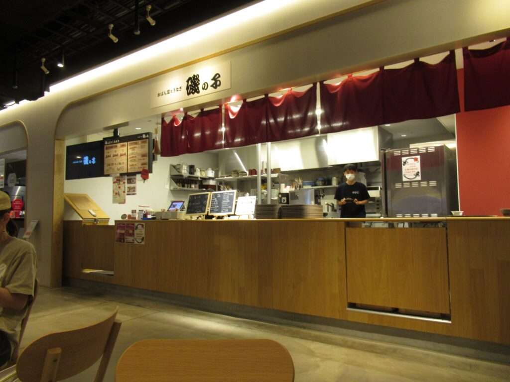 モリノマチプラザ1階のフードコート、ワンセトフードホール内の磯の子でランチでございます。ポテトコロッケの定食でございます。定食には沢山ある小鉢の中から3品選択できるサービスなので、飽きることなく昼食がいただけております。