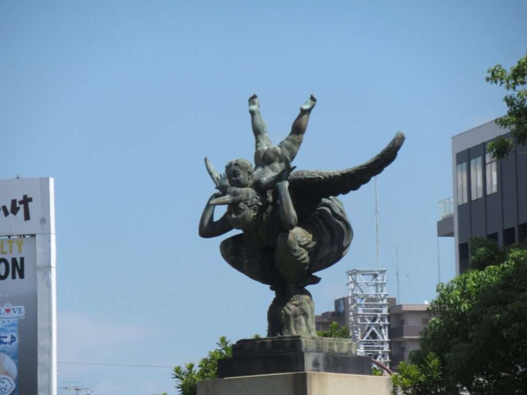 夢二郷土美術館そばの路上にございました日本遺産桃太郎伝説消火栓蓋でございます。何種類かが同時に設置されたうちの一つでございます。桃太郎おとぎ話の舞台になっていると主張する地域は数々ございますが、岡山では岡山地域が起源であると主張し、今ではそれが信じられているのでございます。勧善懲悪モノとはちょっと違う歴史背景での説ですので、信憑性が高いと評されるのでございましょうか、知らんけど(←知らんのかいw)。