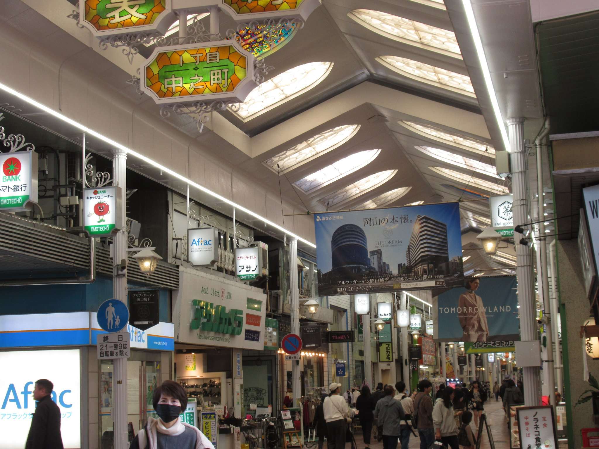 岡山電気軌道東山本線の県庁通り停留場でございます。城下筋に設けられた併用軌道にある電停で、城下筋と県庁通りの交差する内山下交差点の県庁通りを挟んで千鳥式に配置された単式ホーム2面2線となっております。天満屋岡山店を挟んで清輝橋線の郵便局前停留場が450mほどの位置にございます。