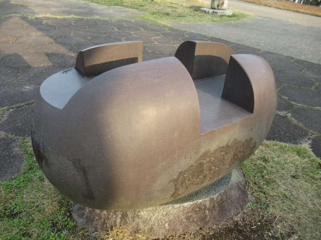 眉山の山頂付近にある眉山公園に設置されているモラエス像「望郷」の近くにある石彫モニュメント、MISSING PARTでございます。Seed of the sun 太陽の種と同じく、マリオ・ロペスさんという方の作品でございます。この方、モラエスの出身地ポルトガルの方なんですね。