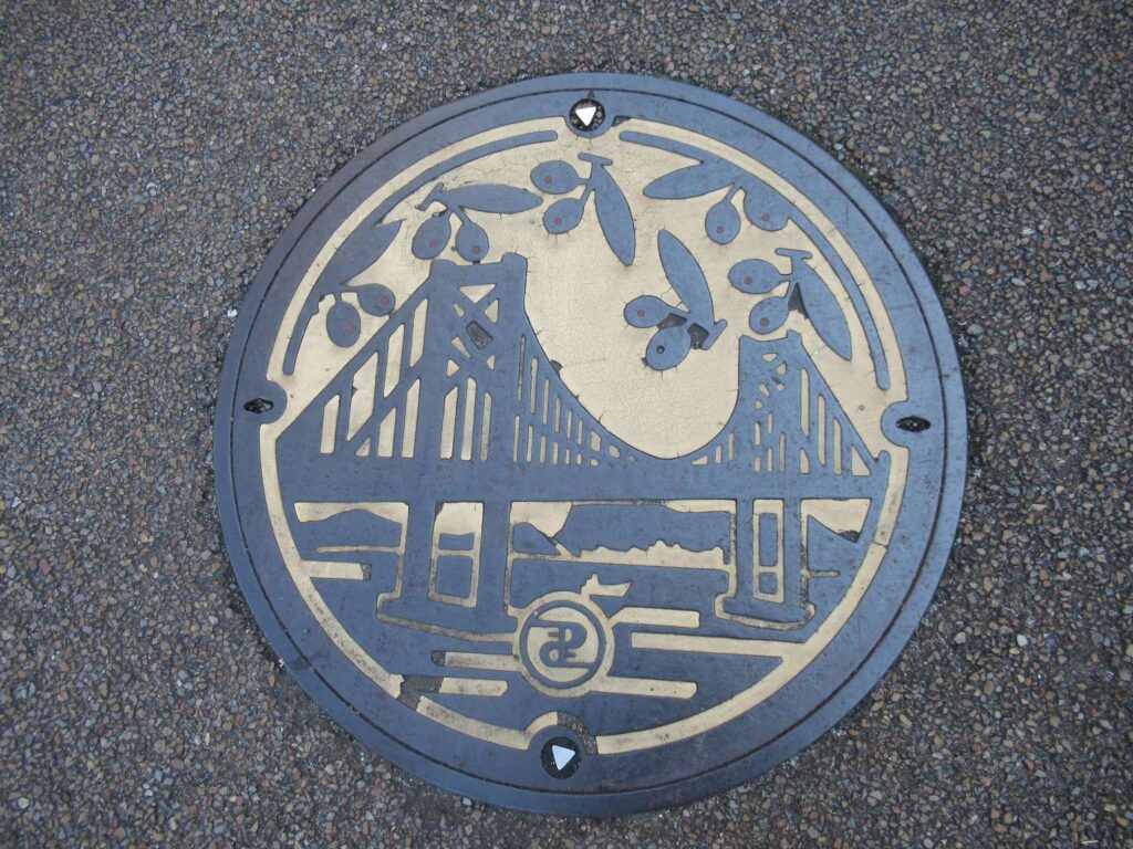 金毘羅街道である高松中央商店街と高松常磐町商店街が交差する地点に設置されておりますポケふたでございます。香川県の観光マスコットも務めているらしいキャラクター「ヤドン」が描かれております。バックの風景はたぶん栗林公園ではないのかなと思いますね、知らんけど(←知らんのかいw)。