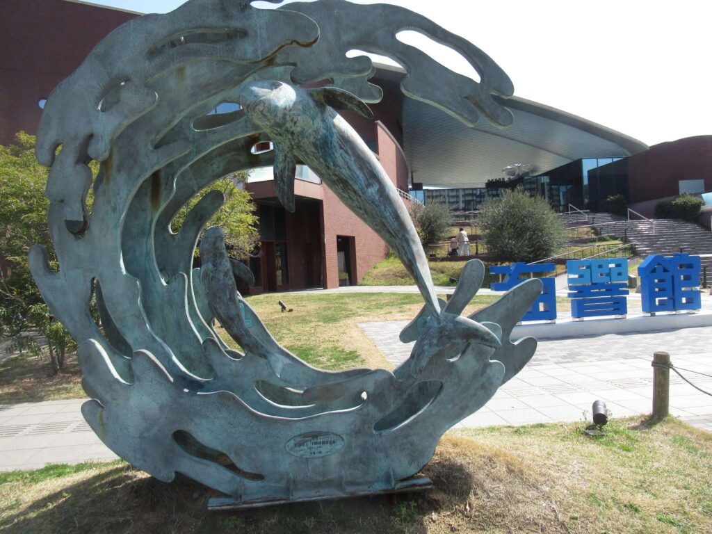 唐戸市場やカモンワーフがあり、いつも賑わっている唐戸地区でございます。唐戸桟橋から見て唐戸市場の手前にあるカモンワーフの海側に置かれておりました大中小の「ふく」モニュメントでございます。ハリボテっちゅうヤツでんな。登らないでください、なんぞと大きく書かれております。聞くところによりますと、マナーのよろしくない訪日外国人観光客がいらっしゃるみたいですな。
