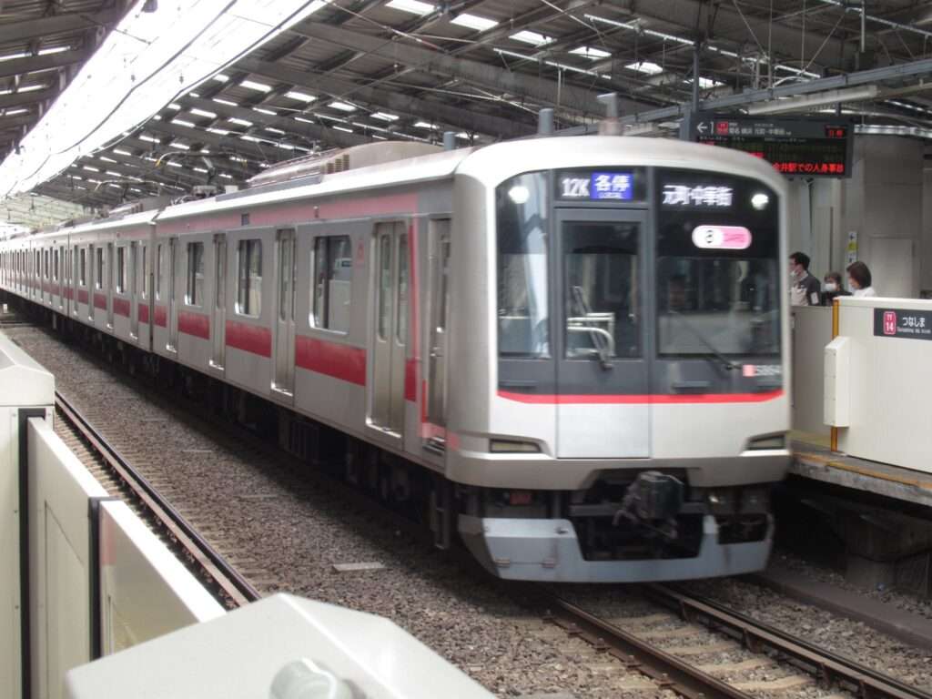 東急電鉄東横線・目黒線と東急新横浜線の日吉駅でございます。横浜方面が東横線の複線と東急新横浜線の複線、田園調布方面が東横線の複線と目黒線の複線を合わせた複々線となる区間にある島式2面4線の半地下駅となっております。外側2線を東横線の電車、内側2線を目黒線の電車が使用しており、東急新横浜線に直通する電車は外側・内側の両線から発着しております。半地下構造のホームの上部に建設された人工地盤の上に駅舎がございます。慶應義塾大学日吉キャンパス・矢上キャンパス、慶應義塾高等学校、慶應義塾普通部、日本大学高等学校・中学校、東京綜合写真専門学校などの最寄り駅となっており、学生街かつ繁華な商店街と住宅街が共存しております。