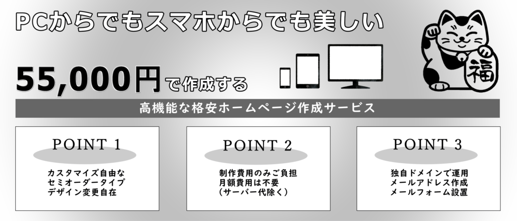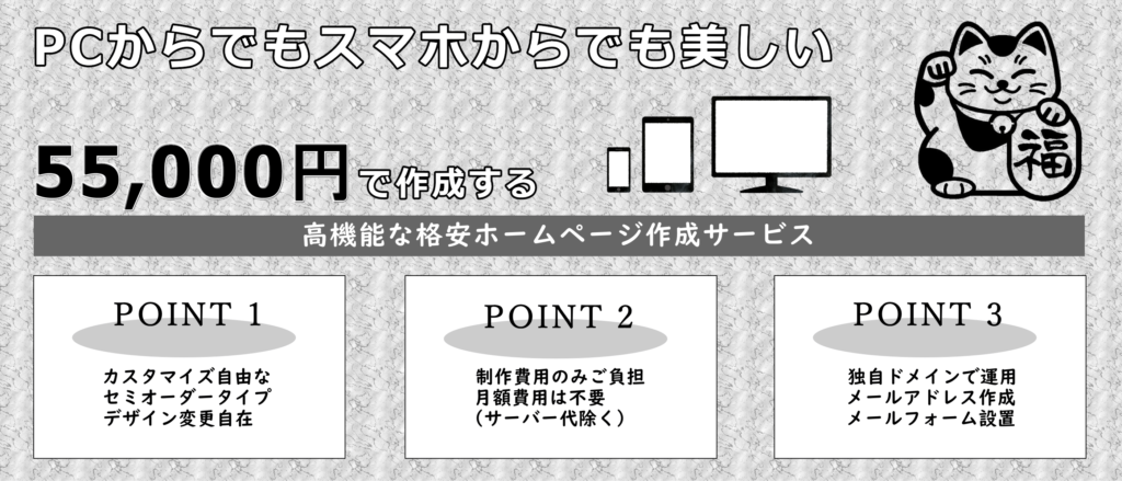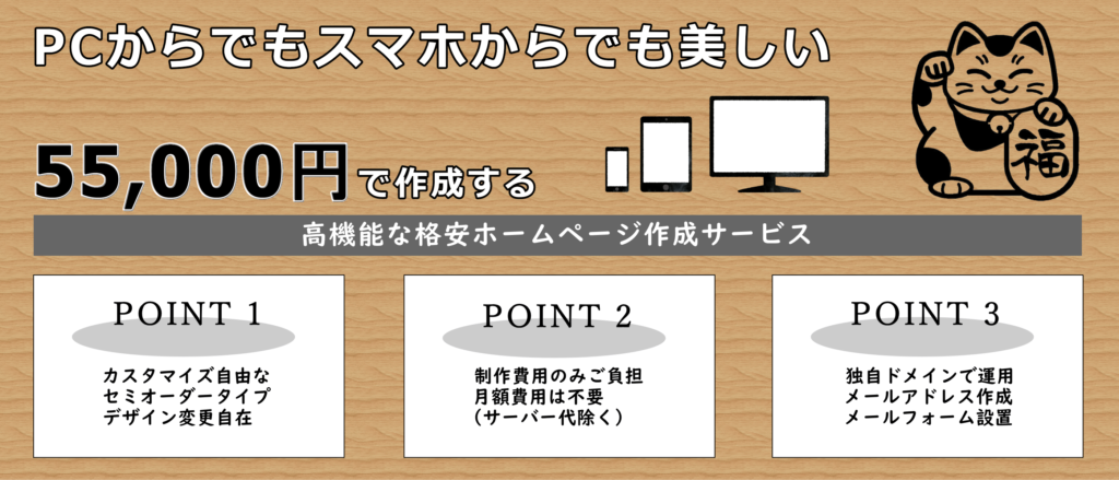 55,000円で作れて月額料金が不要のホームページ作成サービス