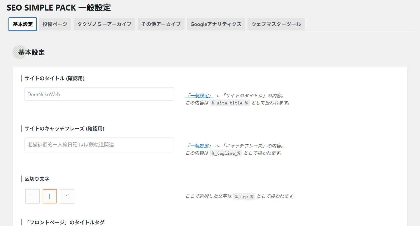 インストール後、何もしなくても最低限必要なメタタグは出力されます。しかし、以下の設定項目は自分で設定することをお勧めします。